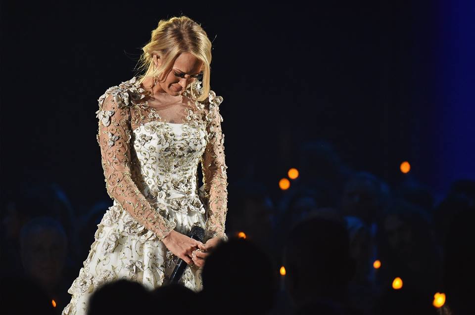 Carrie Underwood gave a beautiful tribute during the 51st annual CMA Awards broadcast. She did an amazing version of the old hymn, Softly & Tenderly.
